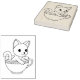 Kitten in a Cup - Cat in a Teacup Colouring Page Rubber Stamp