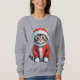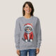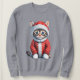 Sweatshirt in a cute tabby kitten, with green eyes, wearing a red and white Christmas sweater and ski hat