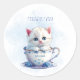 Kitten in Cup Blue Flowers Sticker