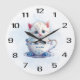 Beautiful Kitten in Cup Blue Flowers Wall Clock