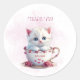 Beautiful Kitten in Cup Pink Flowers Sticker