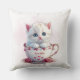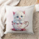 Beautiful Kitten in Cup Pink Flowers Throw Pillow