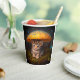 These paper cups have a kitten pictured on them.