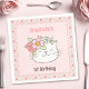 Adorable 1st or any girl Birthday paper napkins with the cutest little kitty and floral pattern all in pink and pastel colours for sweet girls. Easily personalise the text. - Kate Eden Art