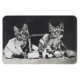 Kitten Mischief Makers Photograph shows two kittens wearing dresses with an overturned sewing basket