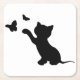 KITTEN PLAYING WITH BUTTERFLIES SQUARE PAPER COASTER