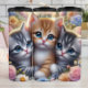 Kitten Trio: Cute, Cuddly, Floral Frame Thermal Tumbler
