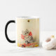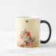 Magic Mug featuring Meta Plückebaum’s artwork Kitten with a Red Ribbon (b. 1876). A grey kitten with dark stripes is beautifully adorned with a red ribbon. The kitten plays with a bee. Yellow flowers decorate the foreground. A wonderful gift for cat lovers and German art enthusiasts!