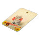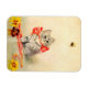 Magnet featuring Meta Plückebaum’s artwork Kitten with a Red Ribbon (b. 1876). A grey kitten with dark stripes is beautifully adorned with a red ribbon. The kitten plays with a bee. Yellow flowers decorate the foreground. A wonderful gift for cat lovers and German art enthusiasts!