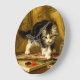 Clock featuring Henriëtte Ronner-Knip’s oil painting The Young Artist (1821-1909). A black and white kitten plays with a paint set and two brushes. An adorable gift for cat lovers and Romanticism enthusiasts.