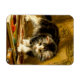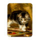 Magnet featuring Henriëtte Ronner-Knip’s oil painting The Young Artist (1821-1909). A black and white kitten plays with a paint set and two brushes. An adorable gift for cat lovers and Romanticism enthusiasts.
