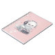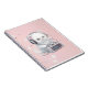 Kitten with radio and headphones on pink background with stars notebook