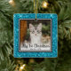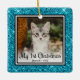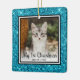 This lovely Kitten's 1st Christmas photo ornament with an aqua glitter edge, the words "My 1st Christmas", your kitty's photo and name and the year will look beautiful on your tree. You'll cherish it and enjoy taking it out every year to put on your tree.