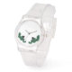 I only have one complaint. I ordered the watch with clear case and strap, and what was sent was white case and strap. I'm going to keep it because 1) it looks very nice in white, and 2) it would take too long to get a replacement made and sent in time for my occasion. Aside from the mix up with the color, the watch does look very good in white. The purple dial is actually sparkly which did not show in the online images. That was a nice surprise. If you like Swatch watches this is very similar to those. It's 33.6mm in diameter, 10.5mm thick, and 40.6mm lug to lug. Stainless steel case back says 3ATM/30m WR, so no swimming or showering or submerging this one. If you like Woodstock, this is a great choice.