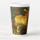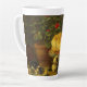 Latte Mug featuring Henriëtte Ronner-Knip’s oil painting Kittens at Play (1821-1909). A mother cat looks on as her four kittens are playing on a chair, plant, and food bowl. A perfect gift for cat lovers and Romanticism enthusiasts.
