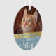 Celebrate your kitten's first Christmas with this personalised ornament. With a background of blue with white snowflakes, just add your cat's name and the year along with two photographs or your cute little feline!