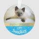 Celebrate your kitten's first Christmas with this personalized ornament. With a background of blue with white snowflakes and a gold stripe, just add your cat's name and the year along with two photographs or your cute little feline!
