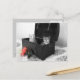 Lovely vintage look with kittens in trunk. Sweetly done in focal black and white editing with lovely red flowers being the focus on the colour