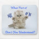 Cute kitten with an attitude. Product reads "What part of meow don't you understand" "Great for cat lovers.