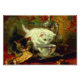 Photo Print featuring Henriëtte Ronner-Knip’s oil painting High Tea (1821-1909). A fluffy white kitten drinks from a teacup and a tabby nibbles a pastry on a tea tray. A perfect gift for cat lovers and Romanticism enthusiasts.