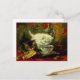 Postcard featuring Henriëtte Ronner-Knip’s oil painting High Tea (1821-1909). A fluffy white kitten drinks from a teacup and a tabby nibbles a pastry on a tea tray. A perfect gift for cat lovers and Romanticism enthusiasts.