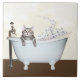 Silver tabby kitty cat hangs over the edge of an old fashioned bath tub complete with bubbles tile. Great for cat lover bathroom decor. Bathtub png purchased from Painted on my Soul for use