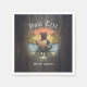 Kitty Buccaneer's Sunset Quest Napkin: A black cat, dressed as a pirate, is holding a treasure map and standing on a retro sunset.