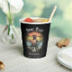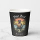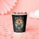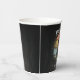 Kitty Buccaneer's Sunset Quest Paper Cups: A black cat, dressed as a pirate, is holding a treasure map and standing on a retro sunset.