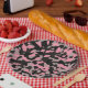 pink and black camouflage abstract paper plates