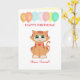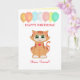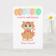 Ginger Kitty Cat Birthday wishes for friend Card. Cute cat with birthday balloons on white background card. All texts can be personalised.