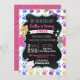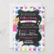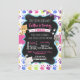 Cute and squishy kitties are the theme of this invitation. A faux chalkboard frame with chalky fonts and a matching paw print background. The back of the invitation has two options for the backside: Pawprint or pink glitter.
