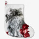 KITTY CAT, KITTEN WITH WHITE RED ROSES LARGE CHRISTMAS STOCKING