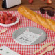 Cute paper plate design for your cat theme baby shower party. Illustration of a sweet white kitten with a smile on her face. There is text on her belly that says "Theresa's Baby Shower 02.02.20XX." Name, event title, and dates are easily editable online.