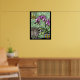 This fun still-life of a big-eyed kitten, ambitious canary bird, and cheerful potted fuschia in a gaily striped glazed pot creates a whimsical tableau evocative of the post-impressionist French painter, Matisse. An original digital painting by Leslie Sigal Javorek, this version is 18"x24" printed on heavy poster paper with a semi-gloss finish.