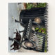 Kitty in The Park along side iron bench and waste can. Black cat. Black rought iron and black cat. By frontiernow.com