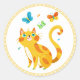 Kitty Kat and Colourful Butterflies, gold frame, Classic Round Sticker