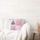 Cute grey kitten and graphic flowers are decorating this pillow, with white polka dots and pink background. You can customise it with your child's photo and name.
