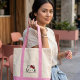 It has sturdy handles and is a canvas tote. It is just what I wanted for my neice to take stuff to the beach on their honeymoon!! The printing was just as pictured.
