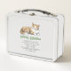 This is a standard metal lunchbox that appears to work just fine. We designed this box ourselves with an uploaded photo and custom text on the front and back. It looks absolutely beautiful except the front of the lunchbox is not centered like it shows in the photo. The print borders don't align with the inset flat part of the box where the preview photo online showed it perfectly centered in there. The back looks nice and centered though.