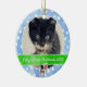 This ornament is perfect for your cat's first Christmas with a spot to put your kitty's name and the year on a light blue snowy background with a picture of Rudolph the red-nosed reindeer at the bottom.