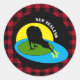 Kiwi Bird & New Zealand, Red Buffalo Plaid Rustic Classic Round Sticker