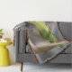A quality printed throw has its advantages. This is a much finer weave throw than its loopier cousins, and though lighter, it is worth the investment for custom room accessorizing. The back is much prettier than the typical brown, and the fringe on the long sides very vivid, the selvage nicely done. Before photographing, I washed the throw in cold water, delicate, with a thicker woven throw the same size. On tumble dry low, this throw was dry in half the time as the other. This is a very practical quality if you use throws for furniture covers or to wrap up in frequently. The sleekness of the fabric makes it a great layer for accenting or protecting without the feeling of sitting on too much stuff. Perfect for napping or when you feel a light chill coming on. The color printing is beautiful and on this fabric, matched the design and color of my Photoshop image. This is an advantage for blending room fabrics and colors. The fringe on the short sides prints the colors from the design image and therefore varies from the side fringe. I streaked a white fractal line through the plaid pattern to give the illusion of weaving. This printed as crisp as an illusory thread, and put some white in the short side fringe, showing another advantage of print vs loomed- for artistic purposes, line lines, detail, and color integrity can be planned and preserved. My loomed throws have color limitations and more of a needlepoint texture. Print throws reproduce an exact image. The throw felt a little stiff straight out of the package, but this went away in the first delicate wash. Of course I searched the wash water for ink or bleeding and there was none.