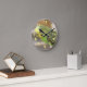 The clock did not take as long to arrive as I thought it might and was extremely well packaged. I didn't do the measurements so I didn't realize it is a little smaller than the average clock but that does not matter (just make sure you check if that's important to you).It is really nifty! It seems very solid and well made not flimsy at all. It has been going well and has kept good time in its few weeks on my wall. Nice product. Gets noticed too! Nicer in real life than the picture but true to the picture