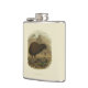 Well made flask, a little better than I had expected. Flask came in clear plastic box which gave it a nice presentation when I took it out of the zazzle packaging. Image is not printed on flask but on sticker. Don't know how this will hold up I haven't used it yet. This would make a Great gift! I plan to purchase more for friends! Cheers. I thought a little brighter than computer. Very crisp, writing wasn't