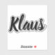 Pictured In Black Is The Name Klaus With A Drop Shadow.