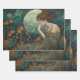Klimt-Inspired Moon Blossom Art Nouveau Decoupage Wrapping Paper Sheet