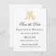 KM Monogram or MK Monogram on a wedding save the date. Contact the seller for other colours, digital files, or custom layouts.