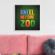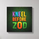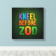 This striking canvas print features a captivating design of intertwining green vines, creating a dense, textured background. The phrase "Kneel Before Zod" is boldly displayed within the vine pattern, its letters rendered in a vibrant array of colours. The contrast between the dark green vines and the multi-coloured text adds a dynamic visual element to the piece. Ideal for fans of science fiction and those seeking a bold, eye-catching wall decoration.