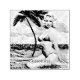 Vintage Pinup Blonde Bikini Model kneeling at the edge of the sand as waves splash her, to customise