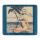 Vintage Pinup Blonde Bikini Model kneeling at the edge of the sand as waves splash her, to customise
